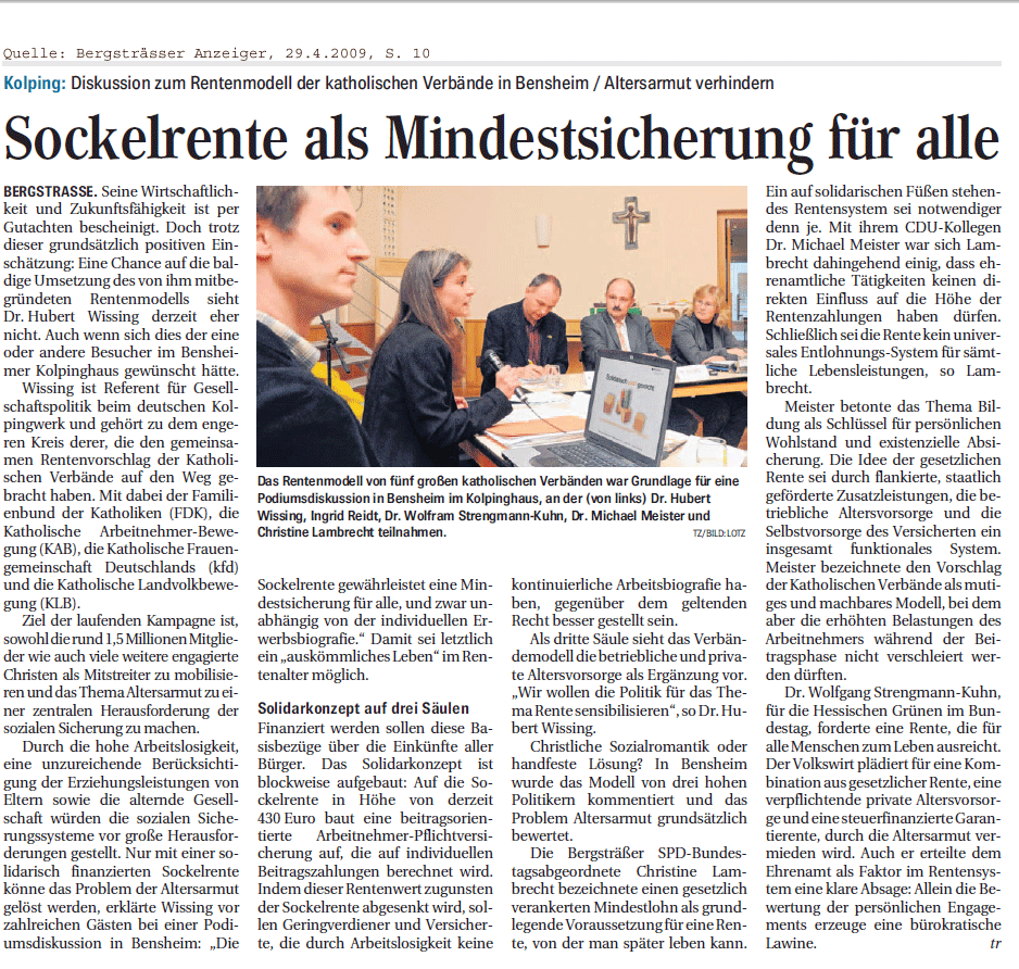 Seine Wirtschaftlichkeit und Zukunftsfähigkeit ist per Gutachten bescheinigt. Doch trotz dieser grundsätzlich positiven Einschätzung: Eine Chance auf die baldige Umsetzung des von ihm mitbegründeten Rentenmodells sieht Dr. Hubert Wissing derzeit eher nicht. Auch wenn sich dies der eine oder andere Besucher im Bensheimer Kolpinghaus gewünscht hätte.
