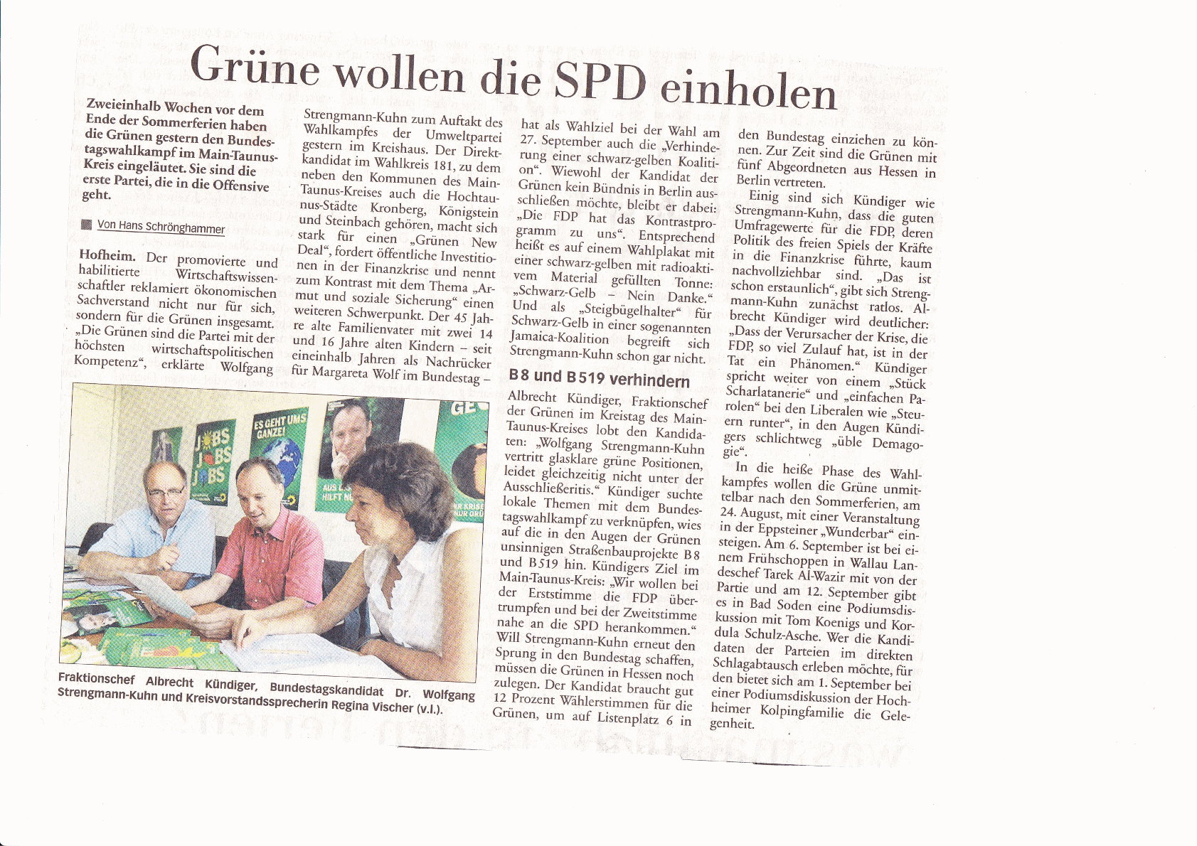 Am Donnerstag, den 6.8.09, eröffnete der Kreisverband der Grünen im Main-Taunus-Kreis seinen Bundestagswahlkampf und stellte der Presse ihren Direktkandidaten für den Wahlkreis 181, Wolfgang Strengmann-Kuhn, vor.