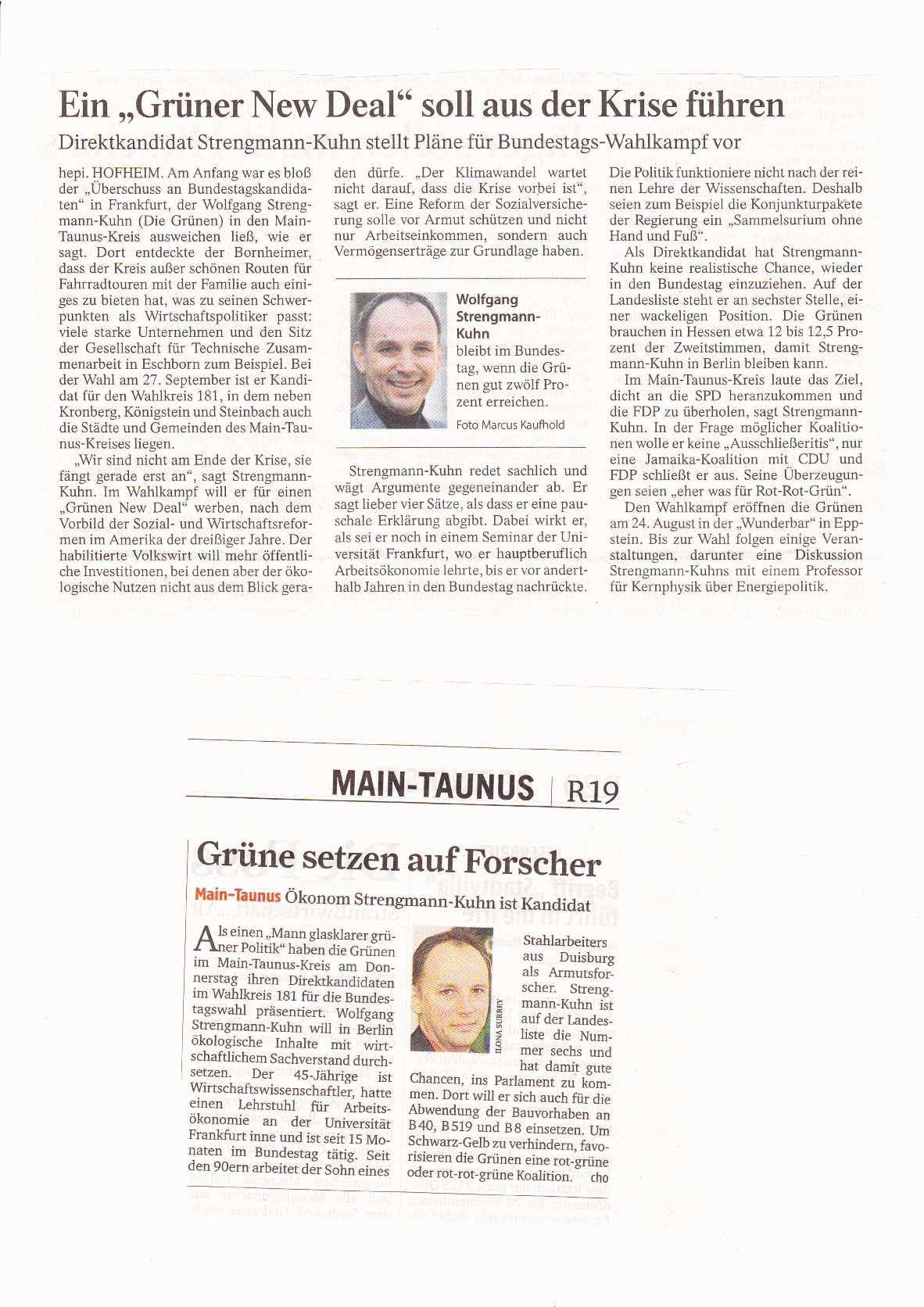 Grüne wollen FDP hinter sich lassen. Wirtschaftswissenschaftler Strengmann-Kuhn will Bundestagsmandat verteidigen / Zweiter Abgeordneter für den Main-Taunus-Kreis.